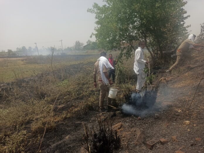 अम्बेडकरनगर।बसखारी थाना क्षेत्र के एन एच 233 के बगल बुकिया (दुर्गीपुर) में खाली खेत में फैला डंठल व झाड़ियां में शार्ट सर्किट से अचानक आग लग गई। अपने कर्तव्यों का बखूबी निर्वहन करते हुए, कांस्टेबल संजय यादव व अमित चौरसिया ने मिसाल पेश किया। अपनी ड्यूटी एवं जनकल्याण की भावना लिए कांस्टेबल संजय यादव व अमित चौरसिया ने देखा कि क्षेत्र में शार्ट सर्किट से लगी आग विकराल रूप लेने जा रही है।बिना समय गवाये कांस्टेबल संजय यादव व अमित चौरसिया ने आग पर काबू पाने का बेजोड़ प्रयास करते हुए सहायता के लिए अन्य लोगों से गुहार लगाई। जब तक क्षेत्र के लोग जुटते तब तक अदम्य साहस का परिचय देते हुए जाबाज जवानों ने भड़की हुई आग पर काबू पा लिया। आग अगर विक्रम रूप धारण कर लेता तो क्षेत्र में बड़ी आर्थिक-नुकसान हो जाती। परंतु जवानों द्वारा किए गए कार्य एवं साहस के चलते विक्राल रूप धारण करने से पहले ही आग पर काबू पा लिया गया। जवानों द्वारा आग पर काबू पाने से पूर्व खाली खेत में फैला डंठल व झाड़ियां जल कर राख हो गई। वही ग्रामीणों ने पहुंचकर दोनों जवानों कांस्टेबल संजय यादव एवं कांस्टेबल अमित चौरसिया के कार्यों को भूरि-भूरि प्रशंसा की। वही ग्राम सभा कटया पहलवान के अखंड प्रताप सिंह ने दोनों जवानों द्वारा किए गए सराहनीय कार्यों को लेकर कहा कि पुलिस की इसी सेवा भावना के चलते हमारी सुरक्षा एवं संरक्षण के साथ पुलिस को मित्र पुलिस कहा जाता है जो दिन-रात जागकर हमारी तथा हमारे धन की रक्षा करते हैं।
