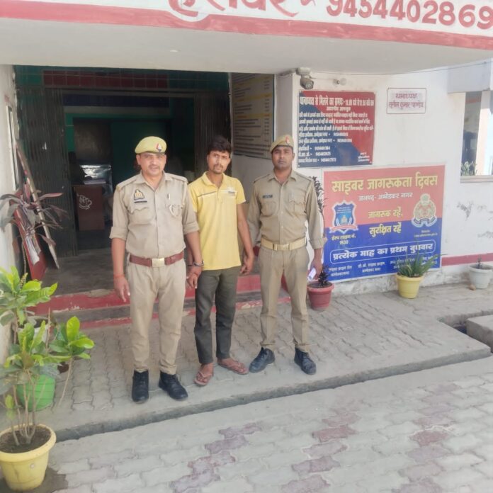 हंसवर अंबेडकर नगर। जिला बदर आरोपी को हंसवर पुलिस ने गिरफ्तार कर जेल भेज दिया। बता दे बुधवार को पुलिस टीम के गस्त के दौरान मुखबिर खास की सूचना पर पता चला कि, एक युवक मुंडेरा मोड़ के समीप खड़ा है। पुलिस के पहुंचने पर युवक पुलिस को देखकर भागने का प्रयास करने लगा। तभी घेराबंदी कर जिला बदर युवक को पकड़ लिया। जिसकी पहचान हंसवर थाना क्षेत्र के दौलतपुर गांव निवासी प्रिंस गौड़ पुत्र राजेश गौड़ के रूप में हुई है। इस संबंध में थाना अध्यक्ष सुनील कुमार पांडे ने बताया कि, आरोपी के खिलाफ थाने में आर्म एक्ट व एसटी एससी समेत विभिन्न धाराओं में पहले से मुकदमा पंजीकृत है। गुंडा एक्ट अधिनियम के तहत मुकदमा पंजीकृत कर आरोपी को जेल भेज दिया गया है।