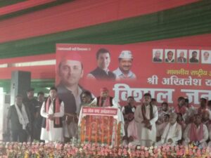 सपा की जनसभा में उमड़ा जन सैलाब,भीड़ देख गदगद हुए अखिलेश यादव
