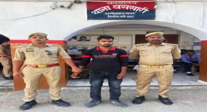 बसखारी,अम्बेडकरनगर। बसखारी पुलिस ने मसड़ा तिराहे से बलात्कार समेत आधा दर्जन धाराओं में वांछित चल रहे आरोपी को गिरफ्तार किया। बता दें कि स्थानीय थाना क्षेत्र के ग्राम दौलतपुर महमूदपुर निवासी सती राम(21) पुत्र जगपाल प्रजापति को मुखबीर की सूचना पर मसड़ा बाजार तिराहे से बसखारी थाना प्रभारी संत कुमार सिंह के नेतृत्व मे पुलिस टीम ने गिरफ्तार किया। प्राप्त जानकारी के अनुसार उक्त आरोपी पर बलात्कार समेत आधा दर्जन धाराओं में मुकदमा बसखारी थाने मे दर्ज हैं। जो वांछित चल रहा था। पकड़े जाने पर उसने बताया कि वह बाहर भागने के फीराक में था। उक्त प्रकरण में बसखारी थाना प्रभारी संत कुमार सिंह ने बताया कि आरोपी पर आवश्यक विधि कार्रवाई करते हुए उसे जेल भेज दिया गया।