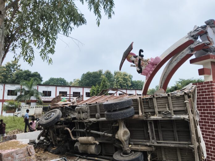 टक्कर इतनी तेज थी कि स्कूल का गेट के साथ ट्रक के आगे का हिस्सा पूरी तरह क्षतिग्रस्त हो गया। ड्राइवर शुक्ल बाजार का रहने वाला बताया जा रहा है जिसका नाम सुनील यादव है।