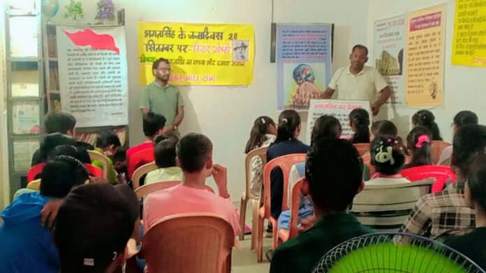आलापुर (अंबेडकर नगर)। नौजवान भारत सभा द्वारा शहीद-ए-आजम भगतसिंह की 118वीं जयंती पर रविवार को सिंघलपट्टी बाजार में “भगतसिंह का सपना और हमारा समाज” विषय पर विचार गोष्ठी का आयोजन किया गया।