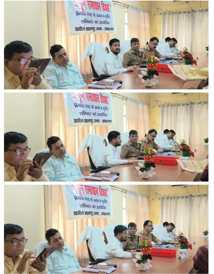 सम्पूर्ण समाधान दिवस में जनसुनवाई के लिए अपर पुलिस अधीक्षक (पूर्वी) श्याम देव, उपजिलाधिकारी आलापुर सुभाष सिंह धामी एवं क्षेत्राधिकारी आलापुर प्रदीप सिंह चंदेल मौजूद रहे। जनसुनवाई के दौरान प्रथम पंक्ति में उपजिलाधिकारी सुभाष सिंह धामी के दाहिनी ओर बैठे खण्ड विकास अधिकारी सतीश सिंह न केवल जनता की समस्याओं से बेखबर रहे बल्कि खुलेआम कार्यक्रम के दौरान आंख मूंदे खर्राटे भरते दिखाई दिए।