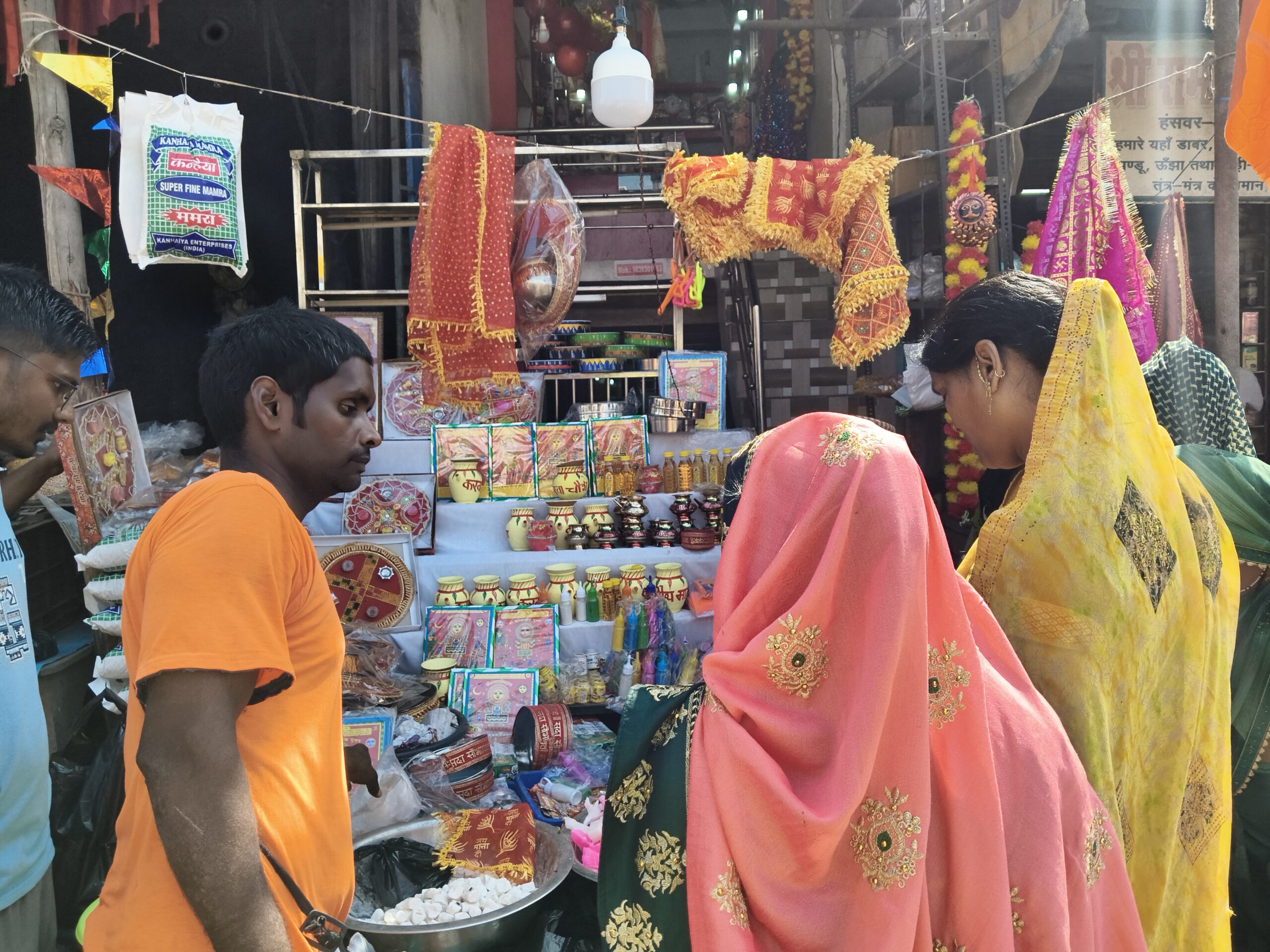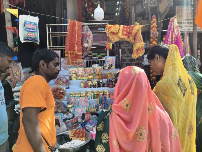 सुबह से ही महिलाएं करवा चौथ से संबंधित वस्तुएं जैसे — करवा, चलनी, नारियल, चुनरी, फूल-माला, कुश, श्रृंगार का सामान आदि खरीदती नजर आईं। वहीं ज्वेलरी और कपड़ों की दुकानों पर भी खरीदारों की भीड़ देखी गई। बाजारों में सजी दुकानों पर महिलाओं ने उत्साह के साथ खरीदारी की।