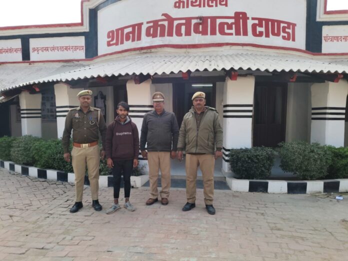 पुलिस के अनुसार थाना कोतवाली टांडा में पंजीकृत मुकदमा संख्या 06/26, धारा 69, 115(2), 118(1), 352 बीएनएस के तहत वांछित अभियुक्त करन कुमार पुत्र स्व. रामचंदर, निवासी मोहल्ला नैपूरा, थाना कोतवाली टांडा को उसके घर के दरवाजे से गिरफ्तार किया गया। आवश्यक विधिक कार्रवाई के उपरांत अभियुक्त को न्यायालय में पेश किया गया।